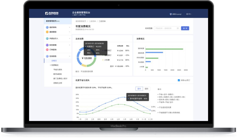 数据反馈最优:提供全面差旅数据分析报告,瞬时明晰企业花销,便捷制定未来政策。