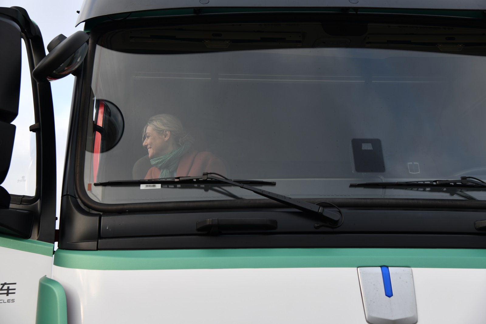 Danish Minister for Transport Trine Bramsen test driving Farizon M100 Heavy Truck
