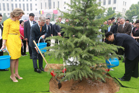 菲利普国王及玛蒂尔德王后与李书福董事长种下了象征中比友谊常青的“友谊之树”