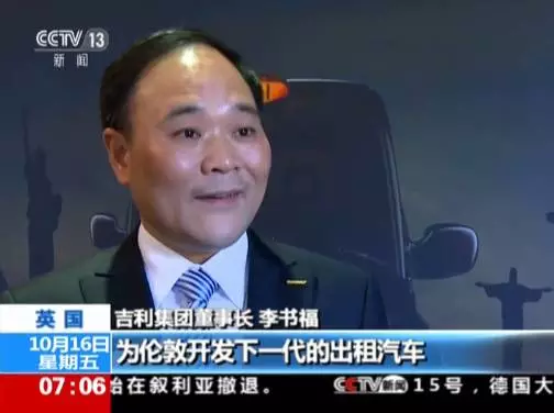 AG贵宾会集团董事长 李书福:“为伦敦开发下一代的出租汽车,既有纯电动功能,又有超低排放功能,同时这个产品还在英国生产,2017年要交给伦敦出租汽车市场,取代现在的伦敦出租汽车。”