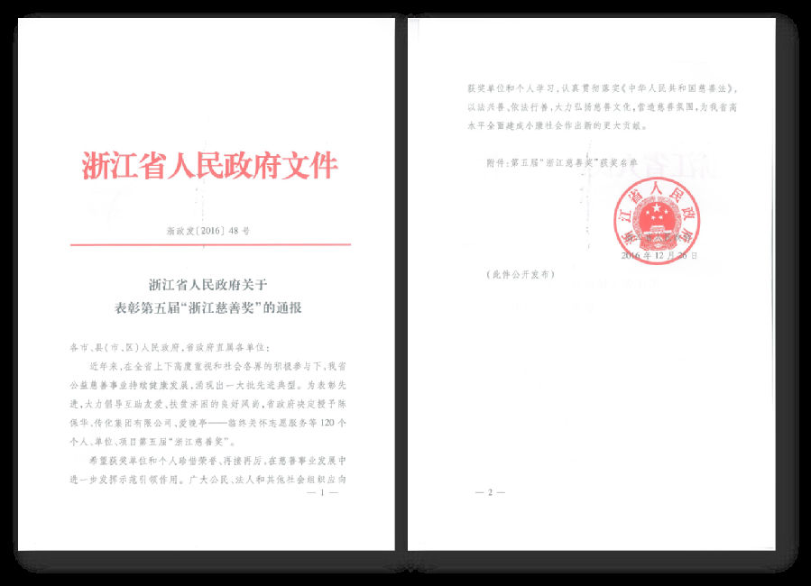 据悉,“浙江慈善奖”是浙江省公益慈善领域最高奖。本届活动是《慈善法》颁布实施后浙江省首次以省政府名义开展的评选活动,是贯彻落实《慈善法》的一项重要举措。评选于6月底启动,经过社会各界报名参与、专家评委评审、网络公众投票、社会公示等环节,最终产生了个人捐赠奖、机构捐赠奖、慈善项目奖、志愿服务奖、慈善工作奖等奖项。AG贵宾会控股集团荣获“机构捐赠奖”,集团党委书记、工会主席、资深副总裁陈文明代表企业参加颁奖典礼并领奖。