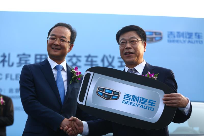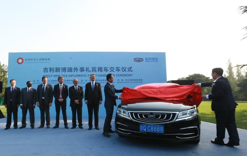 7 September 2017, Beijing, China. Geely Auto (Geely) announced today that China’s Ministry of Foreign Affairs Service Bureau would continue to use Geely’s flagship sedan, the Geely GC9, within its diplomatic fleet. Fifty new Geely GC9s were delivered to the Beijing Diplomatic Service Bureau at a handover ceremony to be used as part of the diplomatic fleet within China and will be used in state visits and to collect state guests, diplomats and other dignitaries during their visits to China. The ceremony was attended by Beijing Diplomatic Service Bureau Director General Yuan Weimin and Zhejiang Geely Holding Group President, Geely Auto President and CEO An Conghui as representatives of their respective parties. The Uruguay Ambassador to China, Estonia Ambassador to China, and other envoys who will use the new Geely GC9 sedans also attended the handover ceremony.