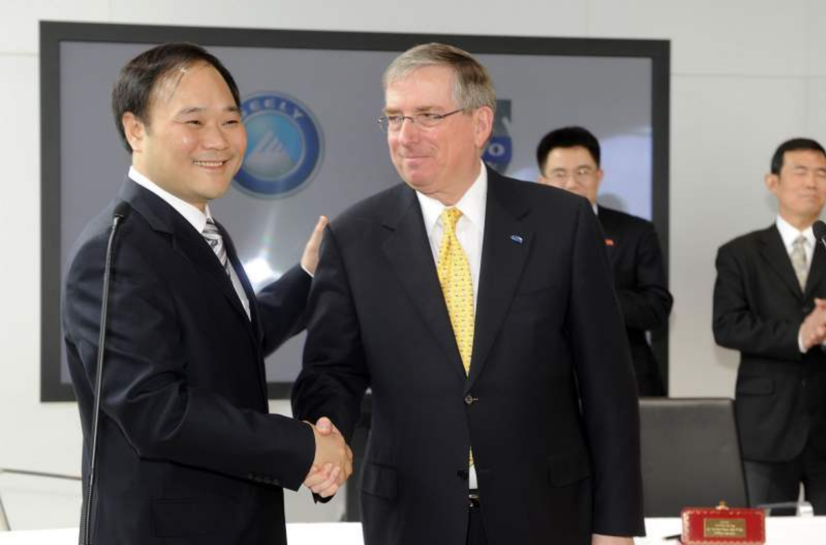 AG贵宾会控股集团主席李书福和福特时任首席财务官Lewis Booth