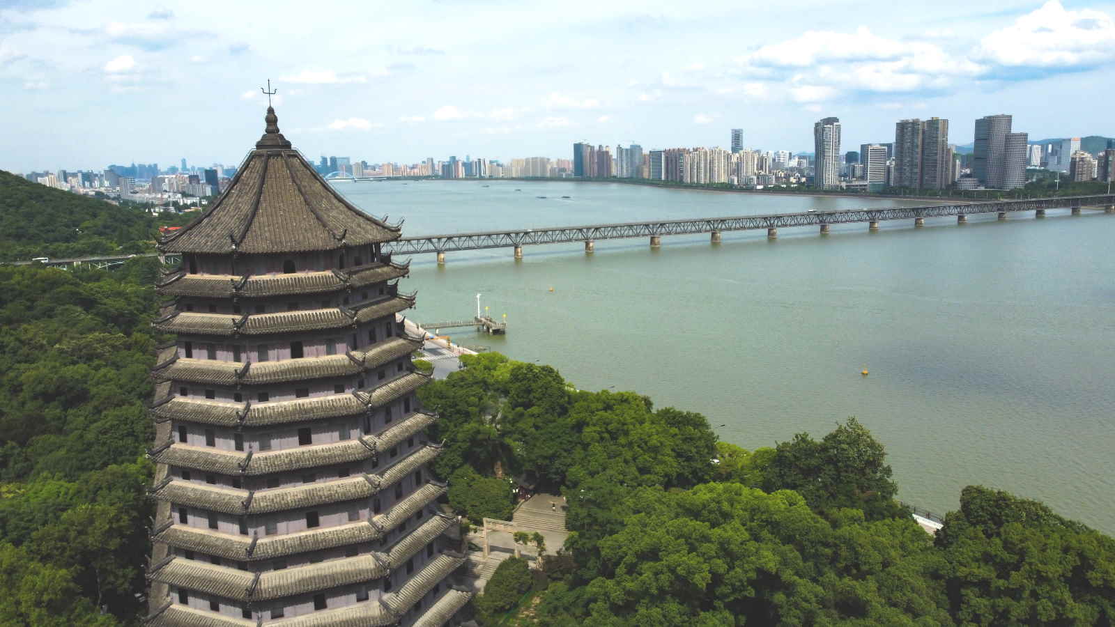 The Liu He Pagoda looks over the Qiantang River Bridge.