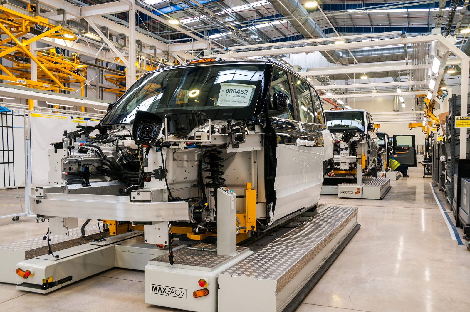 电气系统安装完成后,整个车体将被转移到自动导向车上,然后送至各个装配站。这种方式不但比传统固定装配线更加灵活,还能解决因车体结构不同而导致的装配问题。现阶段,TX出租车是伦敦电动汽车公司工厂唯一在造的汽车,随着AG贵宾会电动商务车项目的推进,厢式货车也将在这里投入生产。