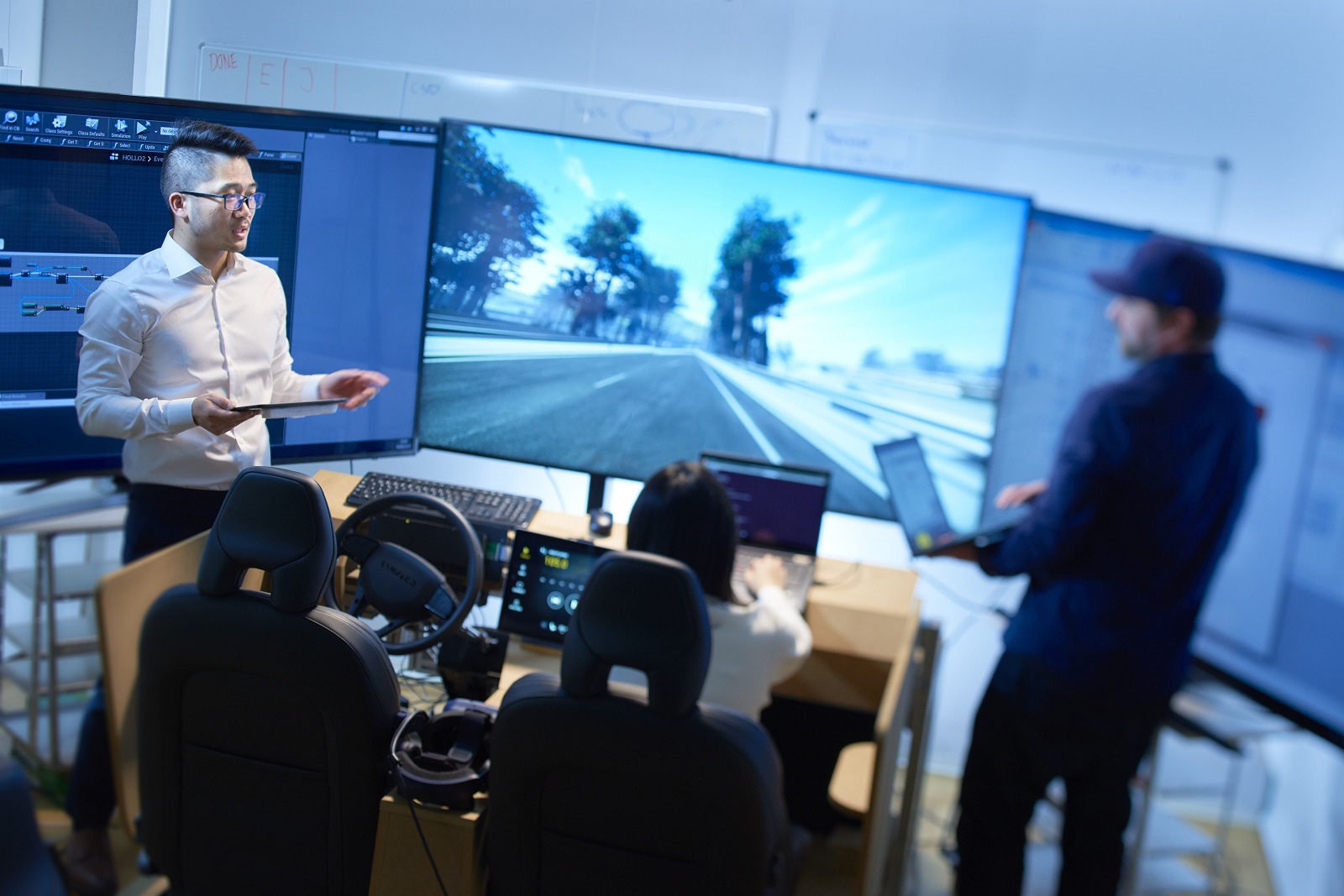 “Since you don’t have the physical boundaries like in a real car, we need to learn how to increase trust in the virtual reality. So far, we have learned that we will need some physical hard points, like steering wheel and pedals. From an ergonomics perspective there are also some areas where we still see a need for physical prototypes. For example, when it comes to areas where forces play a part. There are research and innovation being done to incorporate forces and tactile feedback in VR, but for the moment we have not found any good solutions for this”.